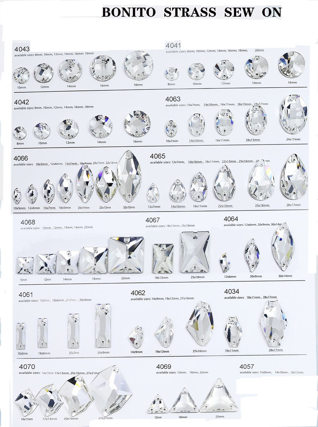 sew on glass color chart different shape